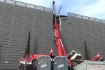 Ein weiterer Kran soll kommen und die Bergung vorbereiten. Dies dürfte sich aufgrund der komplizierten Lage noch länger hinziehen.