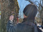 Nach der Theorie ging‘s ans Ausschildern des W 1, auch Wäller-Ruhe-Weg genannt. Vor Ort gab Barbara Sterr Hinweise zum Anbringen. Teils muss Farbe genutzt werden, an manchen Stellen dürfen Schilder auch mittels Alunägeln an Bäumen angebracht werden, und im Kreuzungsbereich ist besondere Sorgfalt geboten, um die Richtung eindeutig auszuschildern... Das Ganze ist kein Spaziergang, sondern echte Arbeit. Schon das schwere Material ist eine Bürde. Barbara Sterr selbst ist daher beim Markieren mit einem Einkaufstrolley unterwegs.