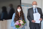 Geschäftsführer Guido Wernert war ebenfalls vor Ort, um den frisch examinierten Pflegekräften zu gratulieren. Gemeinsam mit dem Vorsitzenden der St. Anna-Stiftung, Michael Ruoff, wünschte er den jungen Menschen, das erworbene pflegerische Rüstzeug erfolgreich in der Praxis umzusetzen: „Sie haben an der BILDUNGSWERKstadt eine gute Ausbildung erhalten – das ist ein wichtiger Meilenstein für Ihren beruflichen Lebensweg, aber auch für Sie persönlich", sagte Ruoff. In guter Tradition zeichnete er im Namen der St. Anna-Stiftung besondere Leistungen der Absolventen aus – dieses Mal gingen alle drei Preise an eine junge Frau: Michelle Trieb aus Niederneisen erhielt insgesamt 600 Euro für das beste Examen, für den besten Praxisordner und für die geringsten Fehlzeiten.