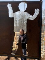 Höhr-Grenzhausen. Die Künstlerin arbeitet mit einem Werkstoff, der ungewöhnlich ist für den Wald: massiver Stahl. Er scheint zeitlos wie der Wald, und doch wird das Kunstwerk rosten und sich – je nach Wetterlage – in unterschiedlichen Farben präsentieren. Langsame, aber stetige Veränderungen sind auch hinter dem Kunstwerk zu erwarten und durch zwei „Fenster“ rechts und links zu betrachten: Hier wachsen tausend Bäume ihrer Bestimmung entgegen.