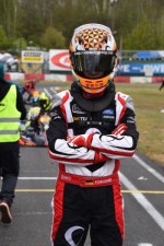 Enrico startete in der Deutschen Junioren Kart Meisterschaft, kurz DJKM genannt. Freitags und samstagsmorgens standen noch freie Trainings auf dem Zeitplan. In diesen behauptete sich der Pilot vom KSW Birel Art Racing Team aus Österreich hervorragend und fuhr ständig unter den Top fünf des 37-köpfigen Starterfeldes. Leider konnte er diese gute Performance im Zeittraining nicht fortsetzen und musste sich mit Startplatz 15 zufriedengeben. „Ich habe es im entscheidenden Moment nicht geschafft, eine perfekte Runde hinzulegen, da in den letzten beiden Runden des Qualifyings ein Unfall passierte und ich somit keine schnellen Zeiten mehr fahren konnte. Da das Zeittraining nur acht Minuten lang dauert, bleibt nicht viel Zeit um die eine perfekte Rundenzeit darzulegen,“ berichtet der Leuteroder.