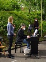 Die Schulgemeinschaft trug ebenfalls wesentlich zu einem tollen Gelingen der Feier bei. So gestalteten Mario Hüsch am Klavier und Jutta Held an der Geige den musikalischen Rahmen, und die neue Konrektorin, Danica Michel, führte locker und wortgewandt durch das Programm. Die Klasse 8d verriet zum Amüsement der Gäste interne „Geheimnisse“ über „Insel-Jörg“, ihren Mathelehrer, und unterhielt mit viel Charme und Wortwitz das anwesende Publikum. Das Kollegium war vertreten durch Heike Fiedler, Heiko Buckard und Christina Cron vom Örtlichen Personalrat (ÖPR), die es sich nicht nehmen ließen, den "neuen" Chef erst mal auf dessen Fähigkeiten zu prüfen. Gottseidank hatte Jörg Müller alle seine Sinne unter Kontrolle und konnte somit problemlos den Test bestehen.