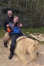Jens Röser, Multi-Künstler aus Schenkelberg, kann endlich, nachdem die Regentage beendet sind, an seiner Mission zur Verschönerung des Kinderspielplatzes in Selters weiterwerkeln. Zurzeit arbeitet er an einer weiteren kolossalen Tier-Skulptur.