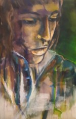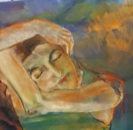 Ein besonders meditatives Bild hat der Präsentation den Titel verliehen: "Der Blick nach innen“ erzählt die Geschichte einer Frau, die in einem Moment der Besinnlichkeit verweilt und Friedlichkeit ausstrahlt. Die äußeren Umstände ummanteln sie in einem dunklen Rot, welches in Grün übergeht und so eine mögliche Wendung andeutet. Auf dem Körper steht die Ruhe des Weiß einem schreienden Rot gegenüber. Doch obwohl Rot-Töne und grobe, hektische Strichführung überwiegen, dominiert Ruhe das Bild. Die Frau passt sich den äußeren Umständen an und behält dennoch ihre eigene Klarheit und Definition, insbesondere durch den Einsatz der Farbe Weiß in Gesicht und Augenpartie.