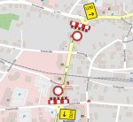 Um die Anbindung an das Netz des öffentlichen Personennahverkehrs zu gewährleisten, werden Busse die Umfahrung Bahnhofstraße – Jahnstraße nutzen. Eine anderweitige Strecke ist nach Prüfung aller beteiligten Stellen nicht möglich. Eine Behelfshaltestelle wird im Bereich der Bahnhofstraße eingerichtet werden.