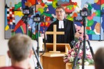 Den Luxus mehrerer Versuche hatten andere freilich nicht. Denn große Teile des Gottesdienstes wurden live übertragen. Im Andachtsraum der Schule filmten drei Kameras die Begrüßung und die Gebete der Schulpfarrer Anja Steinke und Peter Wagner. Und sie übertrugen die Predigt des Kirchenpräsidenten der Evangelischen Kirchen in Hessen und Nassau: Dr. Volker Jung dankte den jungen Menschen zunächst, dass sie in den Monaten der Pandemie so vieles auf sich genommen haben: „Im Rückblick wird man Euch das hoch anrechnen. Ihr wart und seid selbst nicht diejenigen, die besonders gefährdet sind. Ihr habt auf vieles verzichtet, um andere zu schützen.“
