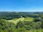 In Racksen geht es rechts durch Felder bergab in Seelbach-Tal. Nach einem Waldabschnitt geht’s durch ein langes Wiesenstück bergauf zur B 256, die wir überqueren. Nach kurzer Zeit erreicht man dann den Aussichtspunkt “Sonnenberg” mit einem tollen Ausblick über die Kroppacher Schweiz.