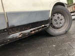 Der optische Eindruck des aktuell genutzten Kastenwagens ließ jedoch auch nichts Gutes erahnen. So waren eine teilweise aus den Befestigungen herausgebrochene, vom Fahrzeug abstehende vordere Stoßstange und starke Durchrostungen an den Türschwellern nur die ersten Feststellungen.