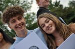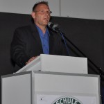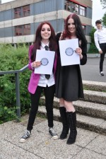 In kurzen Ansprachen verabschiedeten sich die Klassenleiter von den Absolventen, gespickt mit einigen Anekdoten, die bei den Besuchern häufig ein Schmunzeln erzeugten. Nun nahte der Höhepunkt der gesamten Veranstaltung: die Übergabe der Abschlusszeugnisse an die glücksstrahlenden Schüler. Gabi Stratmann, Klasse 10b, Michael Adams, Klasse 10c, der mit seiner adaptiven Rede in Anlehnung an Arnold Schwarzenegger für viel Gelächter und Beifall sorgte, Kristina Latsch, Klasse 9c und Britta Hobert, Klasse 9d hatten die ehrenvolle Aufgabe, die Leistungsnachweise zu übergeben. Auch bei diesem Akt war ein Hauch von Wehmut zu spüren, denn es war für die meisten ein Abschied für immer.