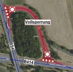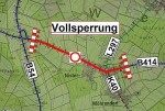 Vollsperrung der B414 – Autohaus Merker und Edeka frei. Die Umleitung erfolgt großräumig über die B54 Richtung Emmerichenhain, B255 Rehe und wieder auf die B414.