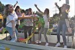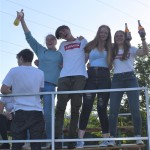 Dann powerte die Band endlich los, es folgte ein wilder Ritt durch alle Genres: Der bunte Mix aus Kölsch- und Karnevalsliedern, aktuellen Hits, Chart-Breakern, Oldies und sogar Volksmusik war sorgfältig ausgewählt, und traf genau den Nerv des Publikums. Das blieb nicht ohne Folgen, denn auf und in den Autos und Planwagen wurde kräftig mitgesungen und mitgeklatscht. Den Besuchern war anzumerken, dass sie sich in der Gemeinschaft wohlfühlten und glücklich über den vorhandenen Kontakt mit anderen Menschen waren.
