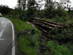 Montabaur. Am Nachmittag befuhr ein Holz-Transporter die Bundesstraße 49 von Montabaur kommend in Richtung Koblenz. Kurz nach der Umleitungsstrecke für Fahrzeuge über drei Tonnen Gewicht kam der Transporter von der Straße ab und kippte leicht um. Dabei verlor er seine Ladung, die anschließen im Straßengraben lag.