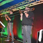 Allerdings muss man bestätigen, dass eine Band, die einen Mix aus Rock und Pop, Hip-Hop, Deutsch Pop, Metal und Ska zum Besten gibt, zärtlich flüsternd nicht sein Publikum erreicht. NBG zelebrierte jeden Song auf ihre eigene, unverwechselbare Art. Sie versuchten nicht, die Originale 1:1 zu interpretieren - und das war gut so. Abgesehen von den schnellen Rhythmen, die Gitarren und Schlagzeug vorgaben, machten die Bläser den Unterschied. Marius Buttenhoff (Trompete) und Andreas Klöckner (Posaune) gaben den Songs das gewisse Etwas. Die häufig stakkatomäßig ausgestoßenen Töne der Bläser peppten fast jedes Lied auf. „The bad touch“ von der Bloodhound Gang war eine sehr eigenwillige Interpretation, die im Publikum wild beklatscht wurde. Als NBG mit „Fight for your right“ von den Beastie Boys extrem losrockte, herrschte im Zelt eine Stimmung wie bei einer Dancefloor-Party.