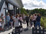 In einer kleinen Abschiedszeremonie dankte Olaf Neumann den sehr engagierten jungen Künstlern, die voller Interesse und Freude sich rege beteiligt hätten. Er vergaß dabei aber nicht die beiden Geschwister Luzia und Tizian zu erwähnen, die genau das richtige Händchen gehabt hätten, um die Kinder anzuleiten und zu begeistern. Die anwesenden Besucher sparten nicht mit freundlichem Beifall, bevor sie in dem neuen „Prunkstück“ von Schenkelberg die Werke ihres Nachwuchses in Augenschein nahmen. Normalerweise gibt es zum Ende einer Ausstellung Prosecco und Häppchen, in Schenkelberg reichte Olaf Neumann den Gästen lediglich Wasser, und Apfel- oder Orangensaft, was aber der allgemeinen Freude keinen Abbruch tat.