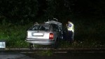 Das Fahrzeug wurde in einer Linkskurve nach rechts von der Fahrbahn geschleudert, wo es sich nach dem Durchfahren einer Baumreihe überschlug und schließlich auf dem Dach zum Liegen kam.