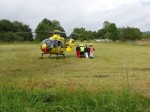 Der Mann wurde anschließend durch den Rettungsdienst und einem Notarzt erstversorgt. Mit einem ADAC Hubschrauber wurde der Verletzte in ein Krankenhaus geflogen. Die Feuerwehr sicherte weiter die Einsatszelle ab und stellte den Branschutz sicher.