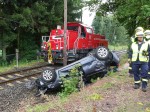 Wenn ein Fahrzeug mit einer Rangierlok zusammenstößt, durch die Luft geschleudert wird, gegen einen Mast prallt und auf dem Dach landet - Und wenn dann der Fahrer selbstständig, zwar verletzt aber lebend, dieses Fahrzeug verlässt, könnte man an ein Wunder glauben. Dieses Wunder aber ist wahr.