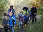 Bei der anschließenden Wanderung durch den Stöffel-Park und die Welt von Steffi Stöffelmaus galt es wertvolle, seltsame und besonders schöne Dinge zu finden. So machten sich die Kinder und Erwachsenen anhand der ausgeteilten Suchliste mit Eifer daran, die Besonderheiten zu sammeln. Im Zauberwald konnten die Kinder dann die Spuren von Wildschweinen und Rehen deutlich am Waldboden erkennen. Die Kinder lernten außerdem sehr achtsam und fürsorglich ihre Eltern, deren Augen verbunden waren, sicher und verlässlich zu ihrem Lieblingsbaum zu führen.