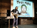 Zwischendurch erobert Micha Marx, ausgezeichnet mit diversen Kleinkunstpreisen, mit seinen Zeichnungen die Aufmerksamkeit der Zuschauer. Auf der großen Leinwand kommt seine Kritzel-Comedy bestens zur Geltung. Entspannt und sympathisch erzählt er von seiner Kindheit. Sein Alter Ego ist ein Strichmännchen (etwas mitleiderregend, etwas gruselig und doch herzerweichend) mit Talent für Nacktschneckenwiederbelebungsversuche. Seine schwäbische Identität mit Öko-Waldorfschulen-Hintergrund ist immer wieder Thema. Micha Marx‘ freundlicher Humor und sein Einfallsreichtum ziehen die Zuschauer in den Bann. Jedes Bild samt der Erklärung dazu – und es sind viele, die er zeigt – wird mit glucksendem Lachen honoriert. Wie gut er ankommt, ist auch anschließend zu sehen: Viele Exemplare seines Buches „Lauchangriff“ werden gekauft und von ihm noch mit einer ganz persönlichen Zeichnung versehen. Aufgeräumt und aufgeladen mit positiver Energie konnte das Publikum zufrieden nach Hause zurückkehren. (PM)