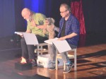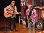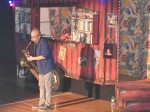 Als „Fackel“ und „Erdnuss“ dann auch noch ein Fläschchen IQ-Schnaps intus hatten, verwandelten sie sich zusehends in Gestalten, die nicht mehr wussten, wohin mit ihrer Kraft. Nach fast zwei Stunden Nonsens bewiesen Knebel und Nachtsheim, dass sie auch musikalisch mit Gitarre und Saxofon bestens unterwegs sind. Henni Nachtsheim liegt ja die Musik praktisch im Blut, war er doch von 1973 bis 1990 Mitglied bei den „Rodgau Monotones“, das sind die mit dem Hit „Erbarme, zu spät, die Hesse komme“.