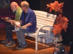Das Komiker-Duo Gerd Knebel und Henni Nachtsheim nannte ihr neues Programm schlicht und einfach „Kaksi Dudes“, auf die Bedeutung muss man erst kommen, denn das ist finnisch und heißt „Zwei Kumpel“. In dem Zweimannstück agieren sie als „Fackel“ und „Erdnuss“, die sich seit ihrer Schulzeit in liebevoller Abneigung verbunden sind und keine Gelegenheit auslassen, über den anderen zu „schwätzen“. Apropos Schwätzen: sie spielen in einem Dialekt, der sehr nach Hessisch klingt. Problemlos hätten „Erdnuss“ und „Fackel“ auch in die Rollen der berühmtesten "Putzfrauen" der Republik der 60er und 70er-Jahre schlüpfen können: „Frau Struwwelisch und Fau Babbisch“.