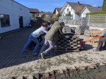 Für die Durchführung der Erdarbeiten zur Schaffung neuer Hof- und Parkflächen durch externe Firmen nahmen die Feuerwehrleute vergangenes Jahr die Vorbereitung der Außenanlagen selbst in die Hand. Hierfür wurde Pflaster aufgenommen, eine Zaunanlage demontiert, ein Container abtransportiert und Busch- und Strauchwerk sowie Bäume zurückgeschnitten. Nach Fertigstellung der neuen Flächen errichtete die Mannschaft eine neue Zaunanlage rund um das Gelände. Danach konzentrierten sich die Eigenleistungen auf den Innenausbau. Im Trockenbau-Verfahren wurden großzügige Umkleideräume für Damen und Herren geschaffen sowie sämtliche Vorbereitungen für den Ausbau von zwei Räumen in einen großen, modernen Schulungs- und Aufenthaltsraum. Ein Großteil der Elektroinstallationen und der Einbau neuer Beleuchtung fielen ebenso in die Eigenleistungen wie die Schaffung der Wandöffnungen für Haupteingangs- und Raumtüren. Ein Meilenstein und eine der größten und aufwendigsten Leistungen war sicherlich die Öffnung und Herausnahme der kompletten Ostfassade des Gebäudes. Hier wurden an einem kompletten Wochenende und darauffolgenden Tagen mehrere Fenster, Türen und Steinelemente Stück für Stück ausgebaut und herausgenommen. Insgesamt wurden über 7,5 Tonnen Bauschutt bewegt. Um zukünftig zwei Stellplätze vorhalten zu können, wurden an dieser Stelle zwei Tore eingebaut, von denen eines der Tore mit über 15.000 Euro komplett vom Förderverein der Feuerwehr finanziert wurde. Zuletzt lag der Fokus auf den Malerarbeiten, bei denen alle Räume einen neuen Anstrich erhalten.