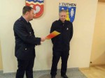 Wehrführer Simon Brömel gratulierte dem Geehrten im Namen aller Kameraden der FFW Niederelbert und sprach Lob und Anerkennung aus. Er bedankte sich auch bei der Firma Loth-Haus, bei der nicht nur fünf Feuerwehrkameraden beschäftigt sind, sondern die auch die Freiwillige Feuerwehr finanziell kräftig unterstützt und darum zu Recht die Plakette als Partner der Feuerwehr erhalten hat.