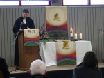 Die Hauptpredigt hielt Dr. Axel Wengenroth, der Dekan des evangelischen Dekanats im Westerwald. In seiner Predigt hatte er zwei Themenschwerpunkte gesetzt, nämlich die Visionen und die Mission. Das Thema Vision sieht der Dekan inzwischen fast inflationär besetzt. Allen schweben Visionen vor, welche immer mehr den Menschen abverlangen, wobei jedoch Menschlichkeit und Empathie häufig auf der Strecke bleiben können.