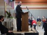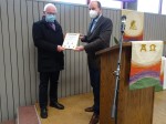 Auch Andre Philippi, der Ortsbürgermeister aus Maxsain, ergriff das Wort. Er überbrachte die Grüße der Ortsgemeinde Maxsain, und hielt ein flammendes Plädoyer für die neue Gesamtkirchengemeinde. Dabei sagte er die Unterstützung aller fünf Ortsgemeinden zu. Andre Philippi übereichte noch eine Urkunde, unterzeichnet von den fünf Ortsbürgermeistern, sowie einen Scheck, ausgestellt mit einem ansehnlichen Betrag. Das Motto des Bürgermeisters: „Kleine Urkunde, großer Scheck.“