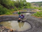 Um die besonderen Lebensbedingungen der Geburtshelfer- und Kreuzkröte zu sichern, kontaktierte das Trio die Obere Naturschutzbehörde der SGD Nord. Nach einer gemeinsamen Begehung des Geländes konnten sich die Amphibienexperten aus Koblenz vom Naturschutzpotential des Stöffel-Parks überzeugen und boten in der Folge Rat und Hilfe an. “Es kam der Vorschlag, Amphibienteiche anzulegen“, erzählt Michaela Nilius. Und auch eine Finanzierung wurde uns angeboten, die mit der Auflage verbunden ist, sich mindestens zwölf Jahre um das Projekt zu kümmern.“ Martin Rudolph, Geschäftsführer des Stöffel-Parks, konnte eine dafür geeignete Stelle abseits des Hauptbesucherbereiches vorschlagen, die sich zudem in einer Feuchtzone befindet.