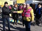 Das Ziel, auf die angesprochene Problematik im Beruf und Haushalt hinzuweisen, schien aufgegangen zu sein, denn viele Besucherinnen des Wochenmarkts waren in lebhafte Diskussionen verwickelt. Als kleines Dankeschön erhielt jede der Besucherinnen eine wunderschöne dunkelrote Edelrose überreicht.