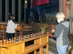 Im rechten Winkel zum Altar waren zwei Kerzenständer aufgestellt. Pfarrer Sahl verlas die Namen der Opfer beim Bombenangriff, Ursula Jansen und Andrea Zammert steckten für jedes Opfer eine Kerze auf. Stille herrschte im Gotteshaus in Anbetracht dieser Aktion. Im Schlusslied kam das zum Ausdruck, was alle wünschen: "Herr, gib uns deinen Frieden". Diesem Verlangen schloss sich Pfarrer Sahl an: "Wir beten für alle, die sich für den Frieden einsetzen". (PM)