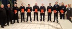 Wehrleiter Oliver Gerlach erläuterte die Umbaumaßnahmen der Feuerwache und gab einen Ausblick auf Veränderungen im Fahrzeugbestand. Anschließend nahm er zusammen mit Bürgermeister Michael Merz und Wehrführer Olaf Faller die anstehenden Beförderungen und Ehrungen vor.