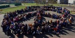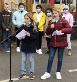 Mit dieser Aktion zeigten die Kinder ganz deutlich, wie wichtig ihnen der Frieden ist, daher sangen alle gemeinsam im Anschluss das Lied “Alle Kinder dieser Welt wünschen sich Frieden“. Nach einer Rede der beiden Viertklässlerinnen Marlene und Mia, in der sie erklärten, wie froh sie waren, helfen zu können, wurde es spannend: Die Scheckübergabe stand an.