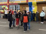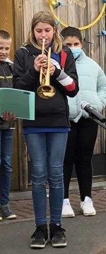 Nach dem passenden Trompetenstück “Final Countdown“ von Nele aus der Klasse 4d erklärte Susanne Letschert, dass alle aus einem traurigen und einem fröhlichen Anlass hier versammelt wären: Traurig, weil Krieg in Europa herrscht und viele Menschen darunter leiden und fliehen müssten, fröhlich aber auch, weil die Kinder durch das Geld, das sie mit ihrer Einsatzbereitschaft, ihrer Tatkraft und ihren Arbeiten den Flüchtenden das Leben etwas leichter machen könnten.