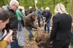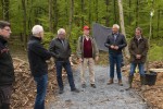Der Pflanzort ist auch ein geschichtlich bedeutsamer Platz, wie Wilfried Göbler aus Rückeroth, Wanderführer des Westerwaldvereins erläuterte. Mit seinen Kollegen Manfred Holl und Rainer Lemmer erkundete er seit 2012 Meter für Meter die nassauisch-preußische Grenze anhand des Ur-Protokolls der Grenzsteinsetzung von 1830. Auf 150 Kilometern Grenzverlauf, beginnend in Koblenz wurden damals 174 Steine gesetzt, von denen circa 80 Prozent noch erhalten sind. Diese Funde wurden fotografiert, dokumentiert und mit denkmalrechtlicher Genehmigung wieder aufgestellt. Der wichtige Stein Nummer 75 wurde nicht gefunden, aber die Nummer 74 war in sehr gutem Zustand und der Stein Nummer 76 steht unweit der Motte in Roßbach. Der fehlende Stein Nummer 75 wurde rekonstruiert und „an dem unwirtlichen Ort mit besonderem Reiz durch seine regionale und geschichtliche Bedeutung“ aufgestellt, wo er seit heute nicht abgrenzt, sondern die gemeinsame Geschichte aller Westerwälder dokumentiert.