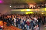 Schlag auf Schlag prasselte Hit nach Hit auf den geflashten Saal hernieder, sodass Leadsänger Sascha Kleinophorst das Publikum immer wieder mit einbezog, Klatsch- und Singübungen durchzuführen. Die überwältigende Mehrheit im Saal folgte begeistert den Anweisungen des Chefdirigenten auf der Bühne. Bereits das Intro mit "One vision" und "We will rock you" in einer Hardrock-Version, brachte den Saal zum Toben.