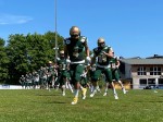 Gestandene Männer, unter den Trikots mit Protektoren geschützt, versuchen einen eiförmigen Ball in die gegnerische Endzone zu bringen oder ihn sogar durch den Torpfosten zu befördern. Die Spielregeln? Wer schon bei den Fußballregeln verzagt, der wird sich im Regelwerk des Footballs womöglich verlieren. Quarterback, das hat man sicher schon einmal gehört. Der Mann der Mannschaft, der den Spielzug festlegt und vermittelt. Der Mann, der den Ball vom Center unter dessen Beinen zugeworfen bekommt, um ihn dann zu einem Teamkollegen zu werfen oder selbst mit dem Ball im Arm losrennt. Doch Fumble, Punt und Tackle? Es ist ganz einfach, denn der Kommentator, Johannes Dommermuth, erklärte während des gesamten Spieles, was auf dem Spielfeld passiert. Hörte man ihm zu, dann verstand man nicht nur die Begriffe dieses Sportes, sondern erkannte, dass es sich hier eben nicht um ein Spiel dreht, in dem sich die Spieler vorwiegend umrennen möchten oder gar auf einem Haufen liegen. Es ist ein Spiel der Taktik, die sich unter anderem aus der Beobachtung der Gegner generiert. Alexandra Marx, 1. Vorsitzende des Vereins, beschrieb es treffend als Rasenschach.