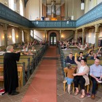 Der Gottesdienst an diesem Sonntag stand ganz im Zeichen der Verbundenheit untereinander. Denn Gott hat das Band der Liebe mit uns Menschen geknüpft. Auch wir sollen untereinander in Liebe durch Jesus Christus verbunden sein. Aus diesem Grund wurden die Bänder, die zuvor in Coronazeiten die Bankreihen abtrennten, umfunktioniert um sie jetzt zu einem großen Band zusammenzufügen.