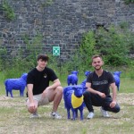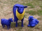 Eine Herde blauer Friedensschafe weidet zurzeit im Stöffel-Park in Enspel