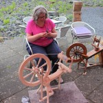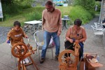 Die Überschrift könnte vermuten lassen, dass es nun um diese kleinen, mehrbeinigen Krabbelviecher geht oder um Menschen, die - wie man im Westerwald sagt - "einen an der Waffel haben". Beide Vermutungen sind jedoch nicht zutreffend, denn am Café "Kohleschuppen" trafen sich die Spinngruppen Faulbach und die Tourist-Information-Wiesensee zum Spinnen. Seit über 33 Jahren wird in lockerer Zusammenarbeit gesponnen, gestrickt und vor allen Dingen geschwätzt und gelacht. Dabei wird die Tradition der Spinnstube aufrechterhalten, die es früher in fast jedem Dorf im Wäller Land gab. Spinnräder wurden unter anderem in Unnau gebaut und waren bei der Hochzeit Teil der Aussteuer, der Ausdruck "Westerwälder Hochzeitsrad" ist daher ein traditioneller Begriff.