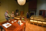 Die Pavillons der Köche waren auf dem Parkplatz zwischen dem Schloss und dem früheren Tagungsgebäude aufgebaut. Auf der Wiese waren Bänke aufgestellt, wo man mit Blick auf die Schlosskulisse mit dem Zwiebelturm sich die Köstlichkeiten schmecken lassen konnte. Wer den ehemaligen Tagungsraum noch kennt, der wird ihn nicht wieder erkannt haben. Hier hat die Familie Sausmikat ihre seit 2004 bestehende Inneneinrichtungsfirma „Arte Fresca“ mit einer Verkaufsausstellung angesiedelt. Einrichtungsstoffe, Tapeten, Bordüren, Teppiche und Accessoires sind hier im Sortiment. „Wir möchten uns heute präsentieren“, sagte Margarete Sausmikat, die Ehefrau von Peter Sausmikat. Es soll ein Vorgeschmack darauf sein, was nach der Eröffnung am 1. August die Kundinnen und Kunden vorfinden werden. Als Inneneinrichter habe man sich auf Maßanfertigungen spezialisiert, sagte Sausmikat - aber: „Wir verkaufen auch Meterware.“