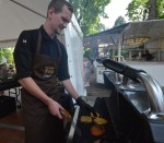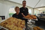 Es entwickelte sich gleich zu einem Publikumsmagneten. Das Leben kehrte sozusagen in das altehrwürdige Gemäuer zurück. „Dauerhaft geschlossen“, sagte „Clohn Rudi“, das finde man, wenn man bei Google Schloss Friedewald eingebe. Das werde sich nun ändern, sagte der Moderator. Nicht dauerhaft, aber temporär soll das Schloss künftig geöffnet sein, sagte er. Und bei Hochzeiten und ähnlichen Festen mehr soll es mehr als nur eine schöne Kulisse sein. Essen gehört natürlich auch dazu. Und das gab es am Wochenende ebenso reichhaltig wie köstlich. Für den hohlen Zahn gab es süßen Schlosskuchen, und auch Deftiges war im Angebot. Der Gasthof Koch aus Daaden hatte Koch-Burger auf der Speisekarte, die Felix Jung mit eingebranntem Schriftzug „Koch“ auf den Brötchen servierte. Marc Peter, Chef der Gaststätte Struthof in Betzdorf schmurgelte Spiesbraten. Die kredenzte er mit Folienkartoffeln und Krautsalat. Natürlich hatte er auch die vegetarische Variante dabei, die Folienkartoffeln gab es mit einem Kräuterdip und Frühlingszwiebeln. Allein 80 Kilogramm Spiesbraten ließen sich die Besucherinnen und Besucher munden.