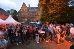Friedewald. Das schwere Schwert an der Wand im Rittersaal musste niemand abnehmen, um es dem kühnen Recken gleich zu tun, der im Grimm'schen Märchen das Schloss von der Dornenhecke befreite. Aber im übertragenen Sinn machten die vielen Besucher das, was „Clohn Rudi“ (Ralf Ringsdorf) mit Verweis auf den Dornröschenschlaf propagiert hatte: „Wir wollen Schloss Friedewald wach küssen.“ Und das hat hervorragend funktioniert. Alle waren hellwach, die Köche genauso wie die Künstler, und allen voran die neue Schlossfamilie Sausmikat und der Chef von „My Dear Captain“, Tobias Link. 2019 hatten Peter und Margarete Sausmikat und ihre Familie das altehrwürdige und ortsbildprägende Gebäude erworben. Auf die Renovierung folgte die Pandemie. Aber jetzt ist wieder Leben eingekehrt.
