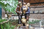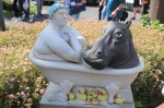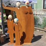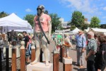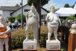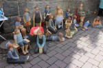 Stellvertretend für alle Aussteller hat sich der WW-Kurier am Stand von Diane Tafel und Martin Sprave näher informiert. Das Angebot fiel durch seine skurrilen Figuren und Objekte auf, die aus Erde und Feuer gebrannt werden. Zugegeben: Die Skulpturen und Figuren reflektieren einen provokativen Stil, der nicht jedem gefallen kann. Wenn man sich aber näher damit befasst, dann merkt man, dass die Figuren mit viel Sarkasmus, auch Zynismus und Spott, hergestellt wurden. Ins Auge fiel unweigerlich die Szene in einer Badewanne, in der sich eine wohlbeleibte Frau mit einem Nilpferd das Wasser teilte. Beeindruckend auch der Kopf mit einem Brett vor dem Kopf, darauf die schwarz-rot-goldenen Farben der deutschen Nationalflagge. Auf dem Brett sind die Köpfe von Mao, Lenin, Stalin, Marx und Engels zu erkennen. Der Kopf streckt zudem weit eine knallrote Zunge heraus, die Krönung des Ganzen ist der Spruch, der unter dem Werk steht: „Mehr Diktatur wagen“.