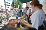 Unterwegs waren immer wieder Rastmöglichkeiten von Vereinen und Institutionen eingerichtet, so beispielsweise vor der Erzquell-Brauerei in Niederschelderhütte. Hier mussten die Leute teilweise absteigen und ihr Fahrrad schieben, um weiterzukommen. Auch hier waren Vereine im Einsatz, beispielsweise der TV Niederschelden. Hier gab es Kaffee, Waffeln und Zuckerwatte. "Es lief ruhig an", sagte Daniela Schwalm. Gerade hatte sie eine Portion Teig für die nächste frische Waffel in das heiße Eisen gegeben und meinte mit Blick auf die Resonanz: "Es wird besser." Auf der gegenüberliegenden Seite war das DRK Niederschelden im Einsatz hier gab es deftigen Erbseneintopf. Was ihm schon zur Mittagszeit aufgefallen war, das war die hohe Zahl an Menschen, die beim Fahrradfahren einen Helm trugen, sagte Rotkreuz Leiter Bernd Donges. Ja, es war im positiven Sinn auffällig, dass kaum ein Radfahrer ohne den wichtigen Kopfschutz radelte.