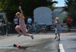 Das war Merzhäuser ein wichtiges Thema. Bei der sechsjährigen Emilia Eisel aus Katzwinkel und ihrer fünfjährige Schwester Anna weckte am "Durchbruch" in Brachbach etwas ganz anders das Interesse: Die beiden Mädchen suchten gerade unter der Sprengeranlage, die die Feuerwehr Brachbach auf der Büdenhölzerstraße aufgebaut hatte, eine Erfrischung. Hier und da fuhr schon mal ein Radfahrer durch den künstlichen Regen. Angesichts der in Richtung 30 Grad Celsius tendierenden Temperatur eine willkommene Abkühlung. Mit dem Förderverein der Feuerwehr war diesmal der neu gegründete Brachbacher Verein "Schachtpäddchen" Brachbach erstmals von der Partie. Gemeinsam war man an der sogenannten "Bergstation" im Einsatz. "Schachtpäddchen" hatte unter anderem auf einer angrenzenden Wiese eine Fläche gemäht. Auf dem Parcours konnten kleine und große Radfahrer mit einem Kinderfahrrad oder dem eigenen Rad über Schanzen und Wippen fahren.
