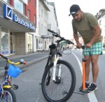 Abends, nachdem Siegtal pur zu Ende war und die Radfahrer mit guten Eindrücken und Erinnerungen wieder auf dem Heimweg waren, mussten die Absperrung und die Schilder wieder abgeräumt und auf die zwei Lastwagen gehievt werden - und auch an den Raststätten gab es noch genügen zu tun. Auch der neue Betzdorfer Verein Molzberger Freizeitsportgemeinschaft (MFG) musste an der Wilhelmstraße wieder einpacken. Die Aktiven hatten hier erstmals Biergarnituren aufgestellt. Außerdem bot der MFG eine kleine Pannenhilfe. Luftpumpe, Ratsche und Werkzeug lagen bereit, und wem die Luft gar nicht mehr im Schlauch blieb, der bekam auch einen neuen.
