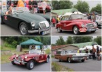 Hier ist nur eine kleine Auswahl der Oldtimer, die Bernd Schultz begrüßen konnte: Ford Mustangs, Cadillac, Lincoln, Pontiac, Jaguar, Bugatti, Land Rover, Thunderbird, MGs, Peugeot, Citroen, Chevrolet, Lancia und alle deutschen Fabrikate wie Mercedes, VW, Opel, BMW, Porsche und viel mehr. Besondere Aufmerksamkeit fand der englische Scimitar, den angeblich Queen Elizabeth II ihrem Sohn Charles als erstes Auto schenkte.