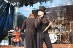 Mit hereinbrechender Dunkelheit wurde es noch heftiger: Waren die Bands zuvor schon nicht gerade zart besaitet, donnerten "Coppelius" und "Ensiferum" wie ein Tornado über das Festivalgelände. Zu beiden Bands größere Ausführungen zu machen wäre so, als wenn man Eulen nach Athen tragen würde. "Coppelius" fand genau den richtigen Mix aus Rock und Kammermusik, den sogenannten Kammercore. Mit klassischen Instrumenten der Kammermusik (Kontrabass, Cello, Klarinette), gekleidet in edlem Zwirn und mit Zylinder als Kopfbedeckung, betrat die Band die Bühne und veranstaltete eine wahrhaftig bizarre Show. Die Songs, die überwiegend in Deutsch vorgetragen wurden, zeigten, dass es sich um etwas ganz Besonderes handelt. "Tragisches Ende eines Luftpiraten", "Risiko", "Aus den Betten", "Operation", und "Handschuh" sprachen für sich. "Coppelius" gelang es ohne Probleme, die Besucher zu faszinieren, und in eine andere Welt mitzunehmen.
